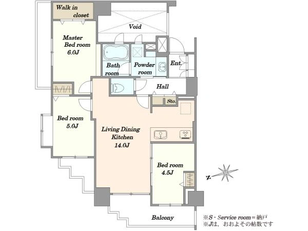 5.0帖、6.0帖を確保。70m2前後のお部屋と