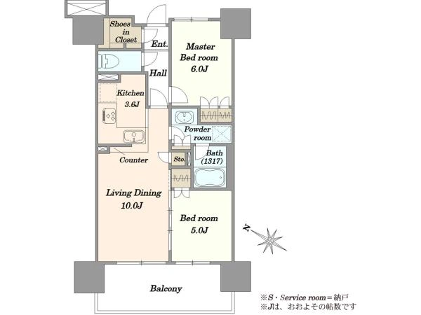 56.78m2×2LDK 14階部分