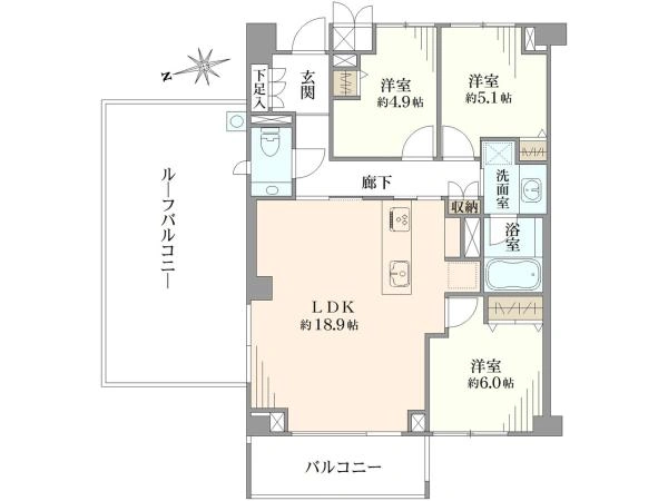 | バルコニー面積 | 6.9m2 | 向き | 北東 |