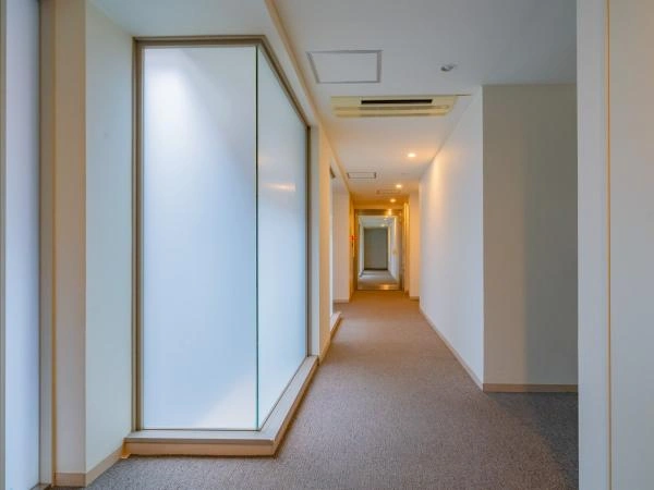 デザインガラスの壁を内廊下に設けております。