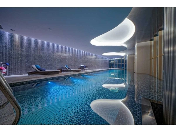 フィットネス&スパエリアのプールサイドに、