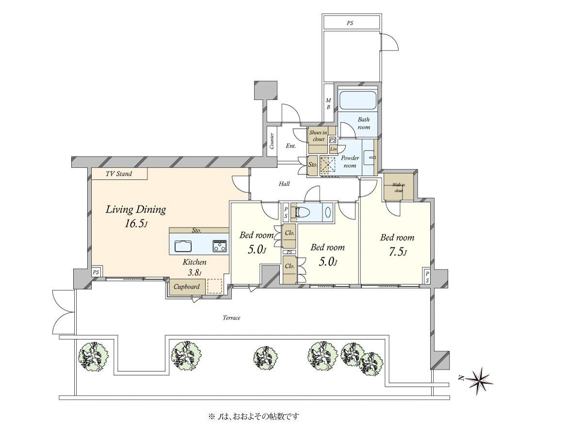 ●専有面積88.24m2×テラス42m2 3LDK+WIC+SIC