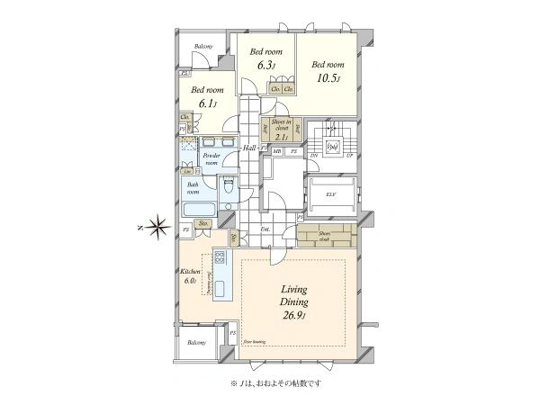 | 全室南向き | 全ての居室の主要採光面が概ね南向きである物件 |