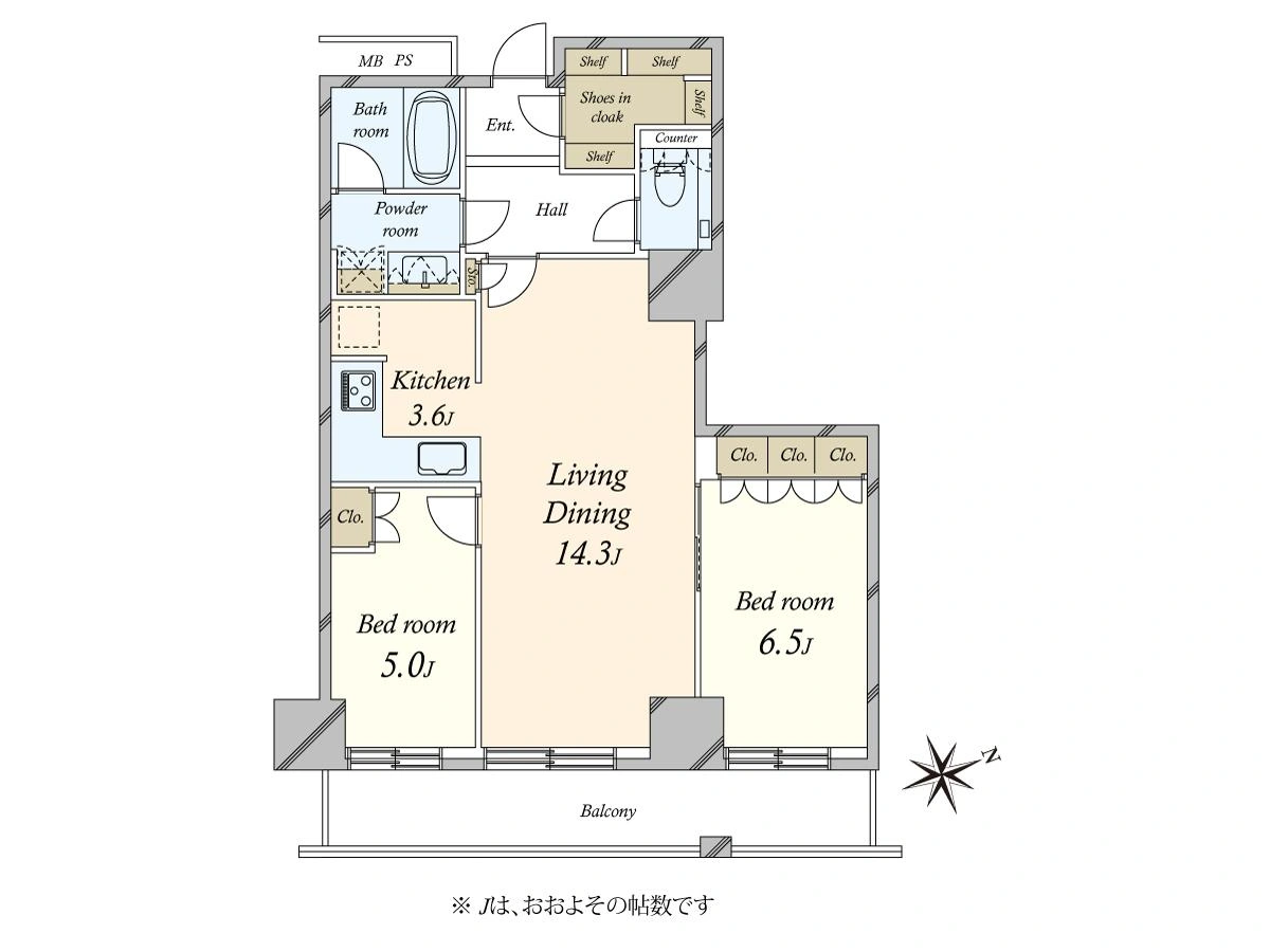 | 全室南東向き | 全ての居室の主要採光面が概ね南東向きの物件 |