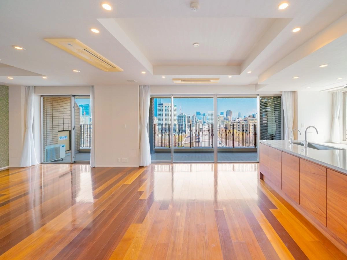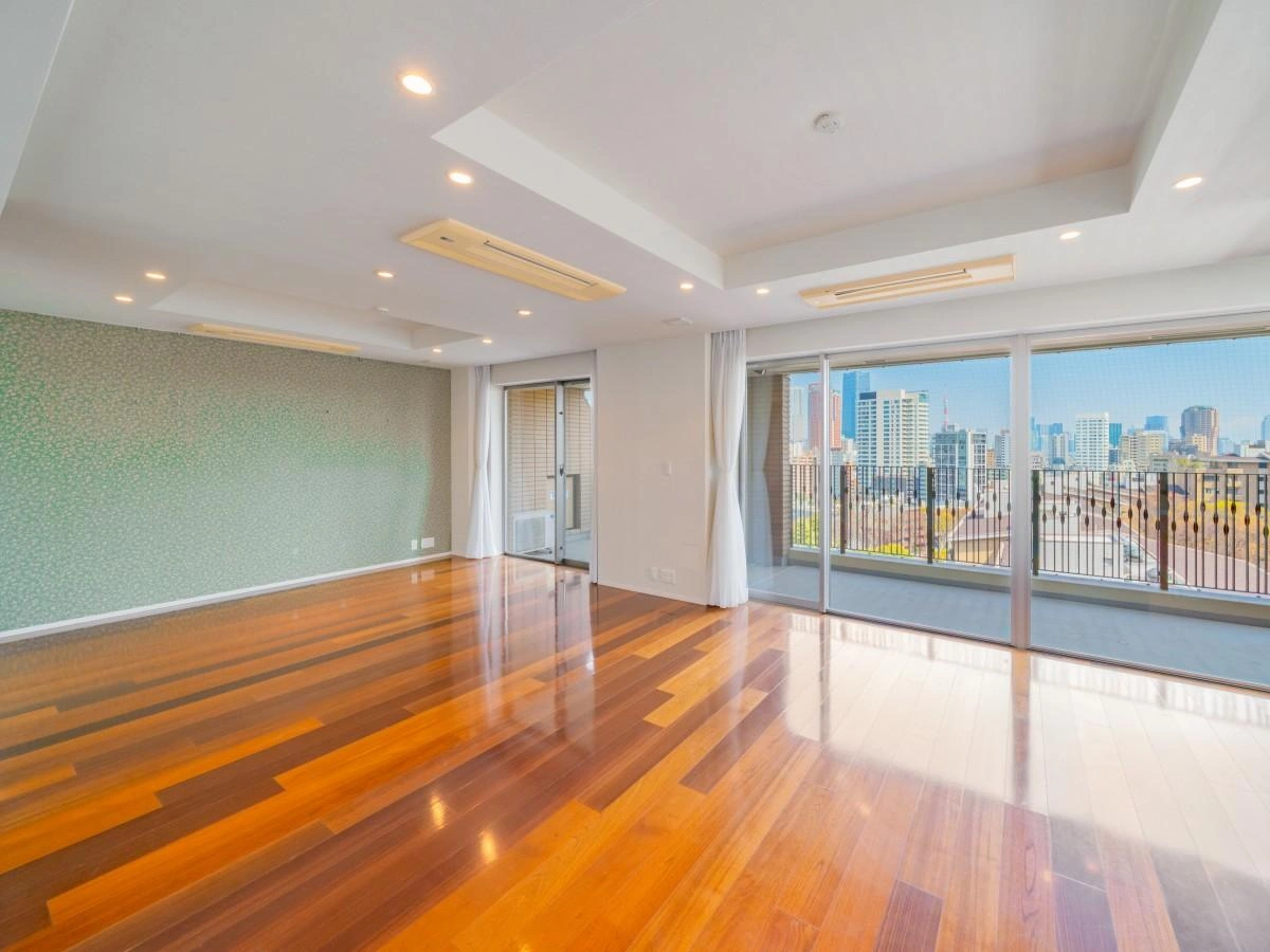 お部屋からは広尾ガーデンフォレストの敷地と緑(広尾北公園)そして空を望みます