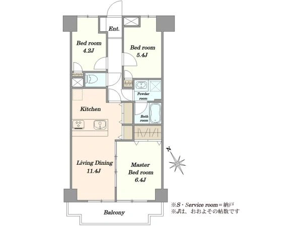 | バルコニー面積 | 7.4m2 | 向き | 南西 |