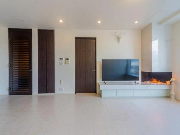 壁掛テレビ対応・水蒸気で炎を演出した暖炉
