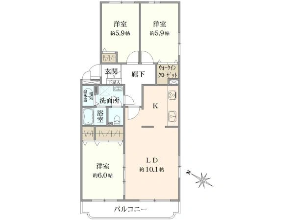 ファミリーにも対応できる広さで、使い勝手の良い間取りです。