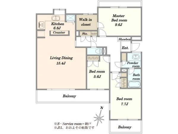 ★98.98m2、3LDK+ウォークインクローゼット、2面バルコニー