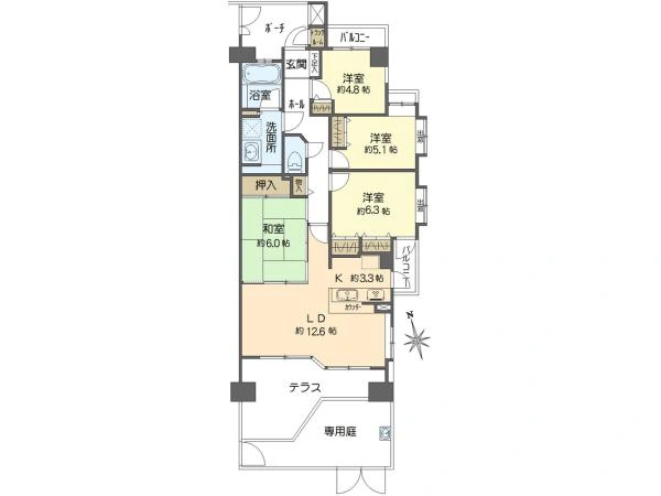 洋室約6.3帖・約5.1帖・約4.8帖です