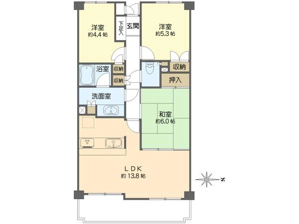 ■お部屋は和室約6.0帖、洋室約5.3帖・約4.4帖です