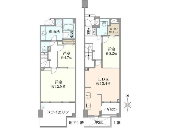 ◆メゾネットタイプ102.84m2×3LDK+WIC