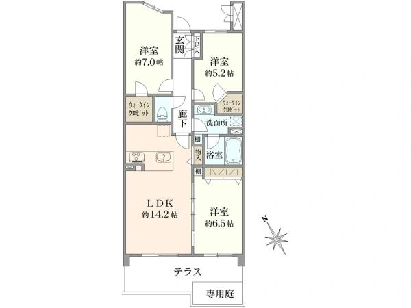 | 間取り | 3LDK+テラス+専用庭 | ||