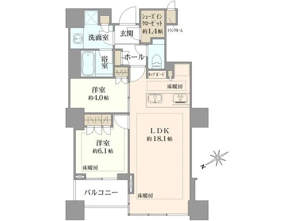 ■2LDK+WIC+トランクルーム、66.41m2 ■4階 ■北西向き ■新築未入居