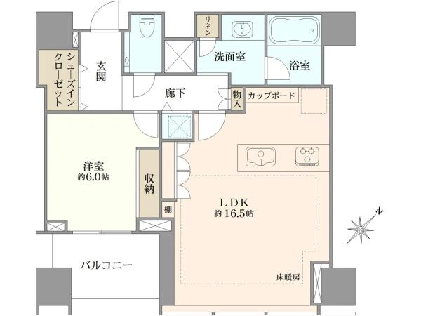 ★57.1m2、1LDK+シューズインクローゼット ★麻布十番のシンボルタワーレジデンス