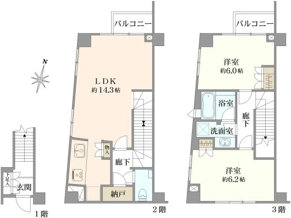 ◇1階玄関・2階・3階のメゾネットタイプ