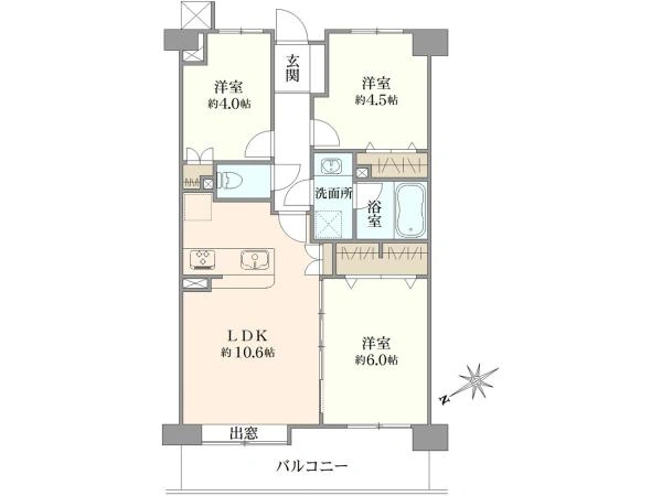 | バルコニー面積 | 9.39m2 | 向き | 北西 |