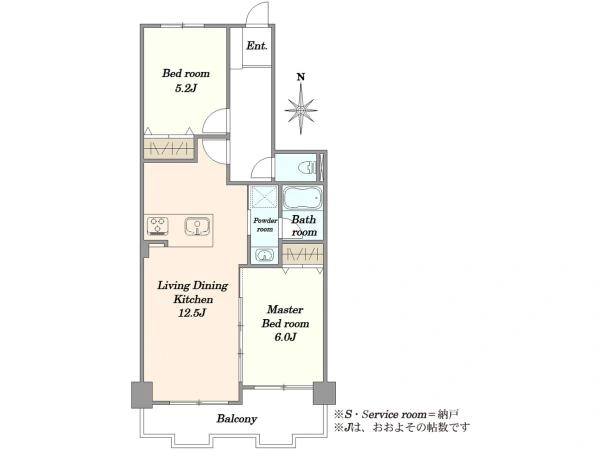 専有面積: 55.18m2(壁芯) / 2LDK