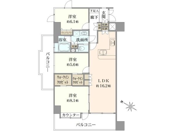 | バルコニー面積 | 18.26m2 | 向き | 南西 |