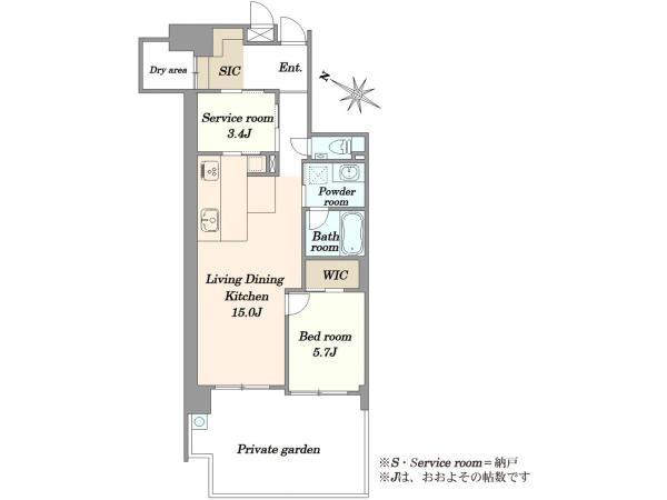 間取り 1LDK+S+WIC+SIC