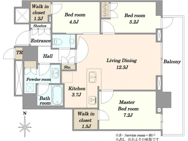 ◆洋室約7.2帖、約5.2帖、約4.5帖