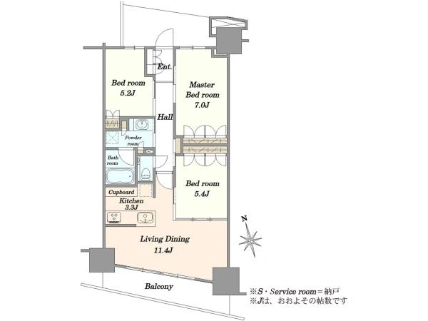 ■洋室約7.0帖、約5.4帖、約5.2帖
