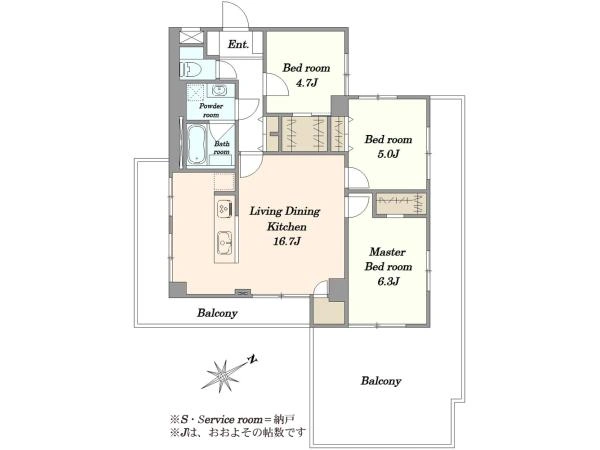 専有面積 72.95m2(22.06坪)(壁芯)