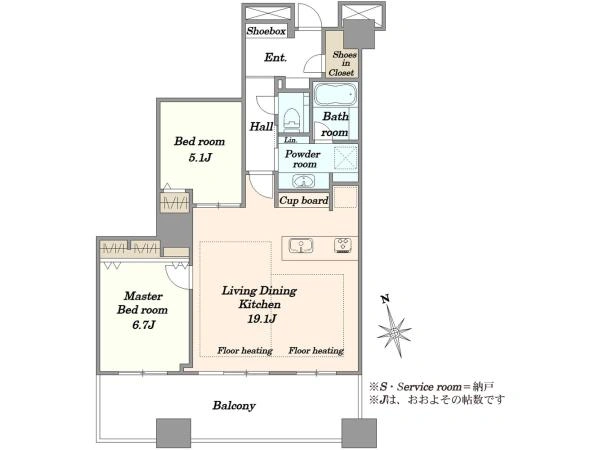 ◇51階部分:南向き・2LDK+SIC×73.14m2 ◇日当たり・眺望・通風良好