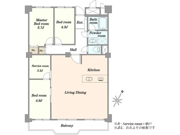 ★専有面積84.98m2の3LDK ★バルコニー南東向き