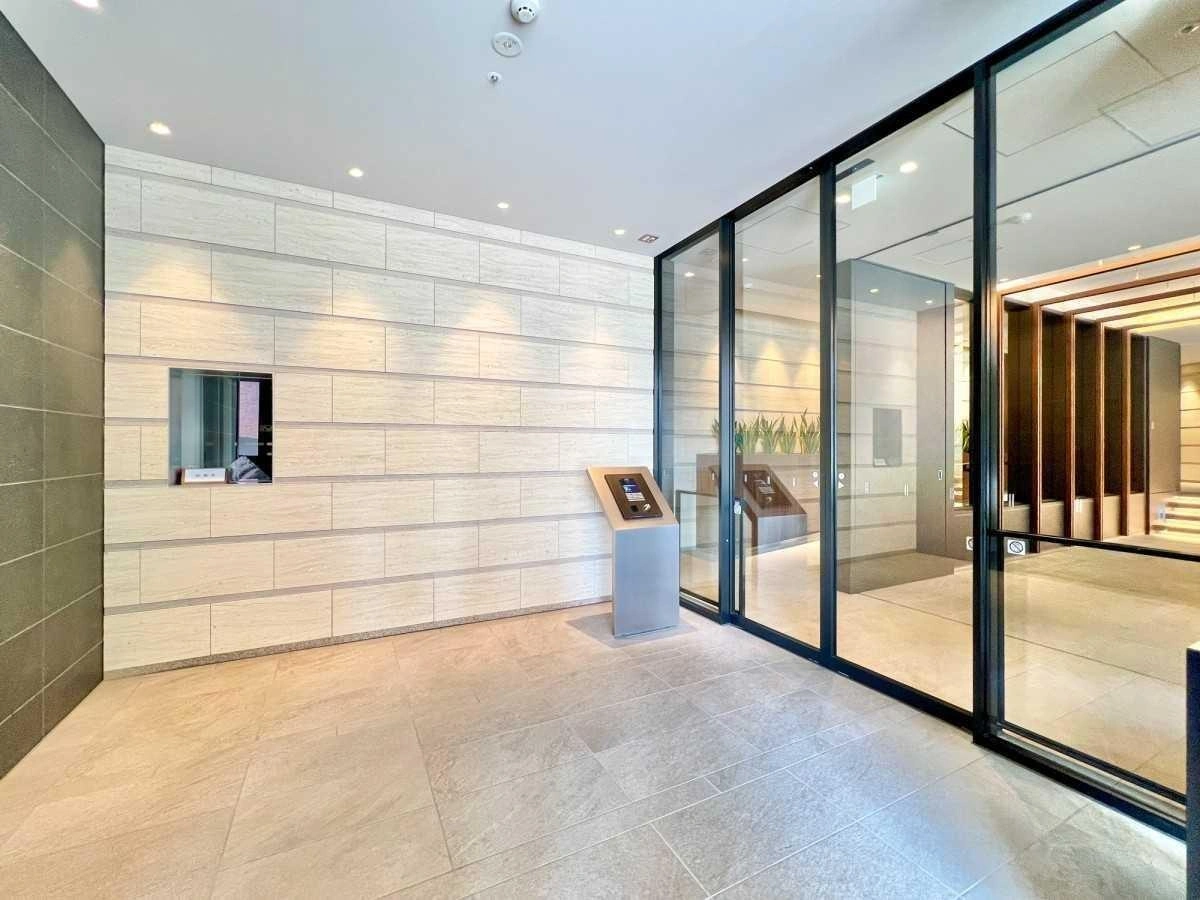 落ち着いた色調と質感のタイルを採用し重厚感漂うエントランス