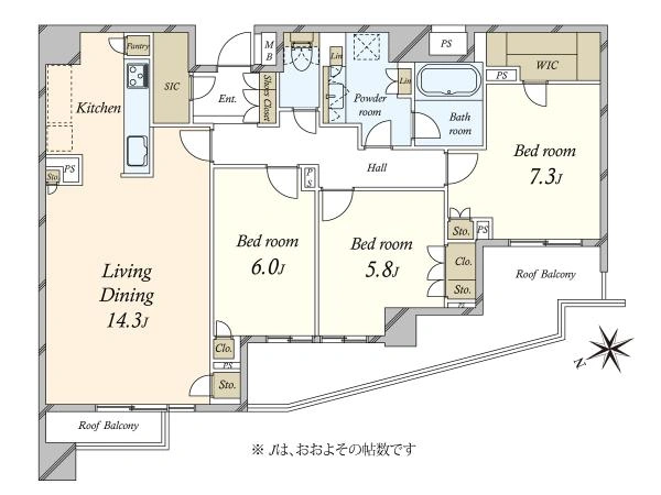 ≪ 91.96m2 3LDK 7階部分 西向き ≫