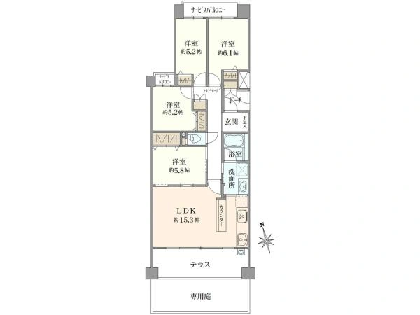 ■約6.1帖・約5.8帖・約5.2帖・約5.2帖の洋室
