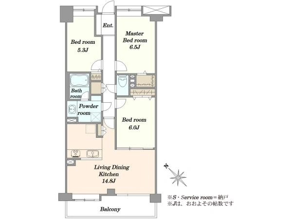 専有面積 73.65m2(22.27坪)