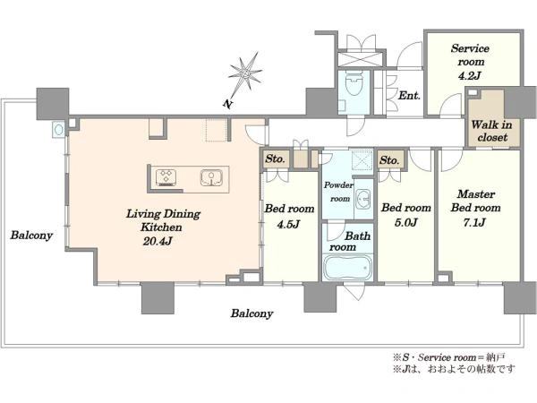 バルコニー面積 46.4m2 向き