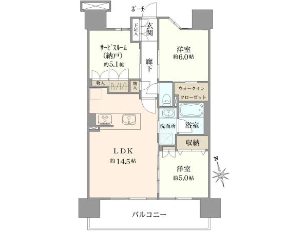 68.38m2ものゆったりとした住戸(2SLDK+WIC)