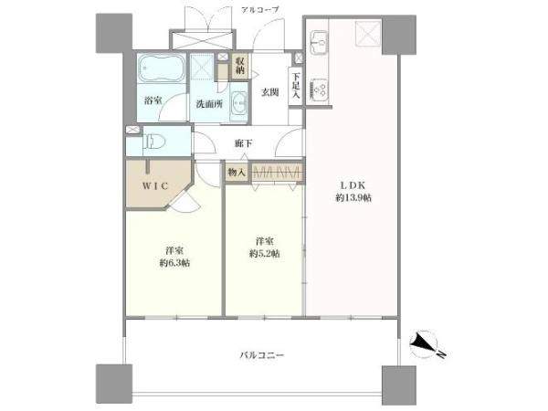 | バルコニー面積 | 15.6m2 | 向き | 北東 |