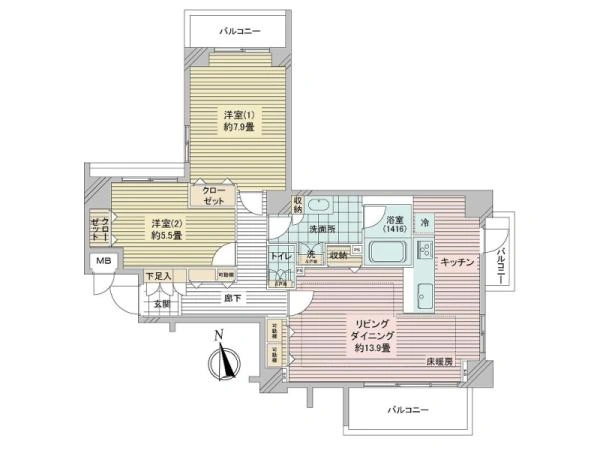 | 間取り | 2LDK | ||