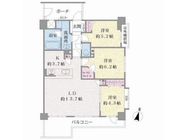 ■お部屋は洋室約6.2帖・約5.2帖・約4.3帖です