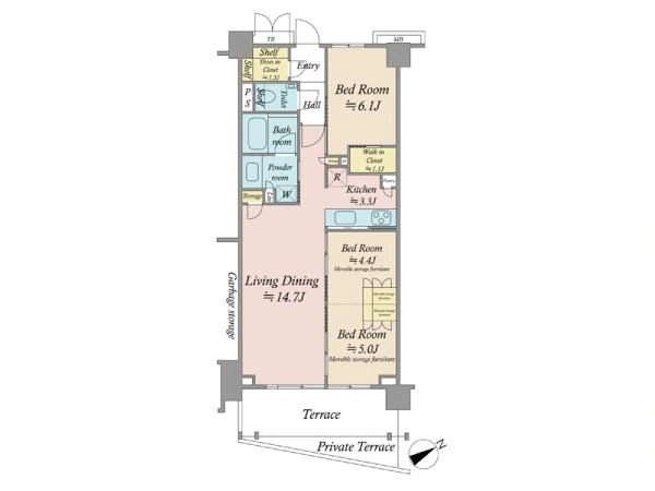 | バルコニー面積 | 10.44m2 | 向き | 南東 |