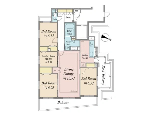 | バルコニー面積 | 13.14m2 | 向き | 北東 |