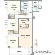 | 専有面積 | 58.15m2~81.42m2 | 間取り | 2LDK~3LDK |