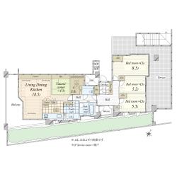 ■4LDK、天井高3mの住戸 ■免震構造マンション ■24時間有人管理(夜間警備員)