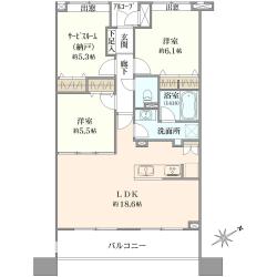 ■南西向き81.06m2、3LDK+WIC、両面バルコニー、専用トランクルーム