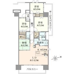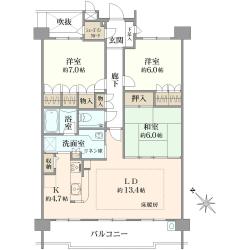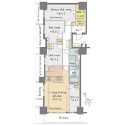 専有面積:88.86m2 2LDK+3WIC