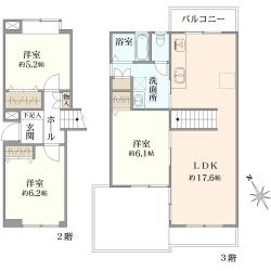 ◇専有面積80.98m2のゆとりある3LDK ◇2・3階部分のメゾネットタイプ