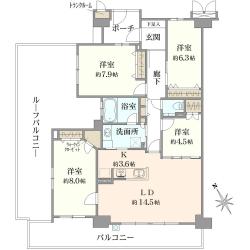 ■専有面積100.94m2 / 南西・北西角住戸 / ルーフバルコニー付
