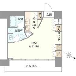 35.28m2(1K)5階部分・東向き