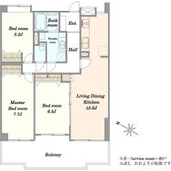 最上階・角部屋・2面バルコニーの3LDK・56.05m2!