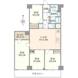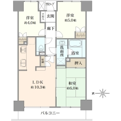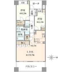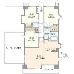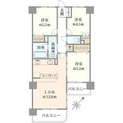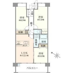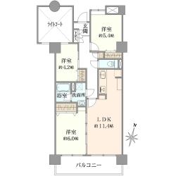 3LDK/69.02m2/南東向き