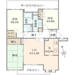 - 間取り3LDK+2WIC
